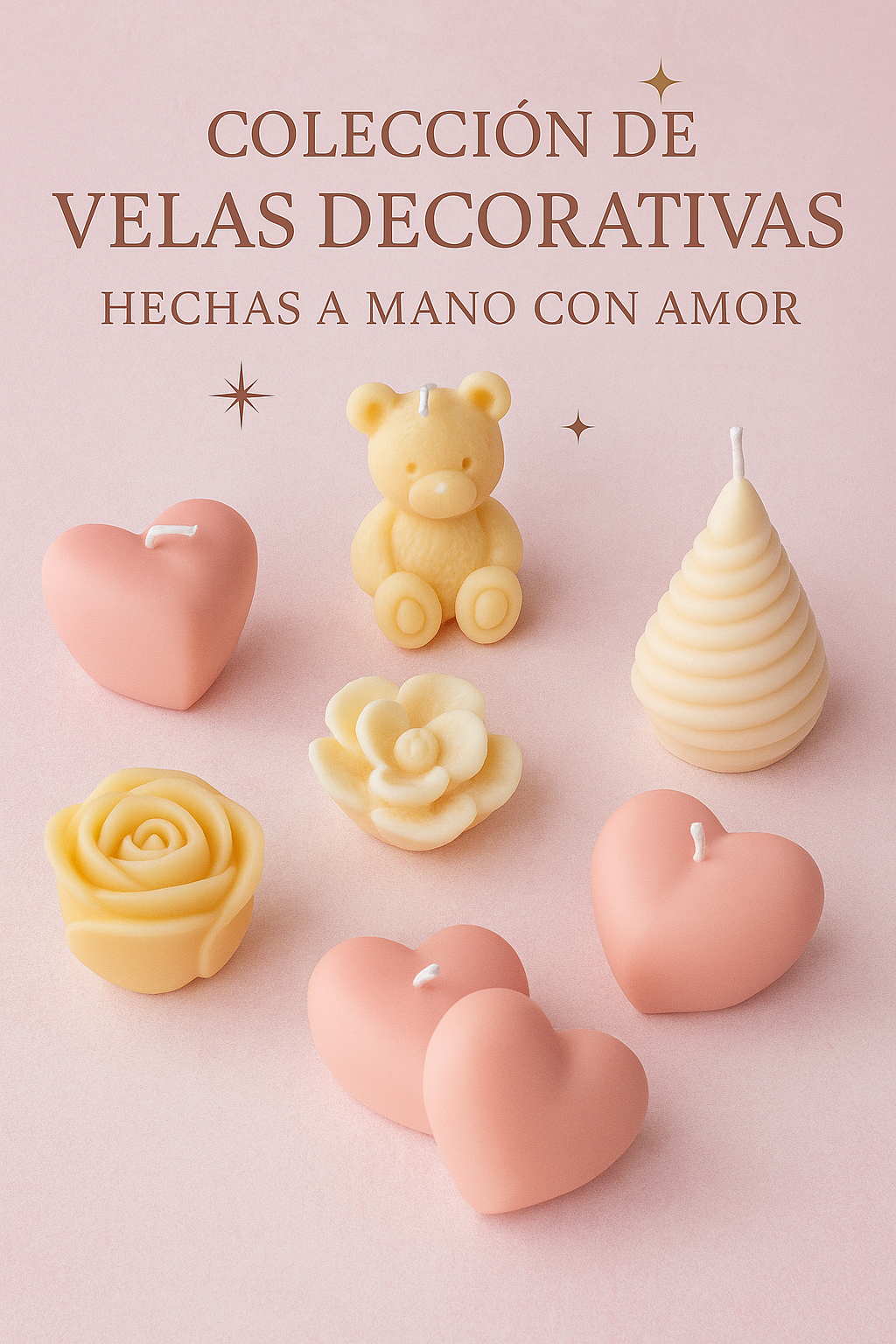 Nuestra Colección de Velas Decorativas está diseñada para transformar cualquier espacio en un rincón lleno de encanto. Cada pieza es elaborada a mano con cera de soya natural y cuidando cada detalle, desde su forma artística hasta su delicado aroma.Disponibles en diseños únicos como flores, tulipanes, rosas y figuras especiales, estas velas son perfectas para decorar, regalar o coleccionar.Añade un toque de elegancia y personalidad a tu hogar con velas que son más que luz: son arte hecho con amor.