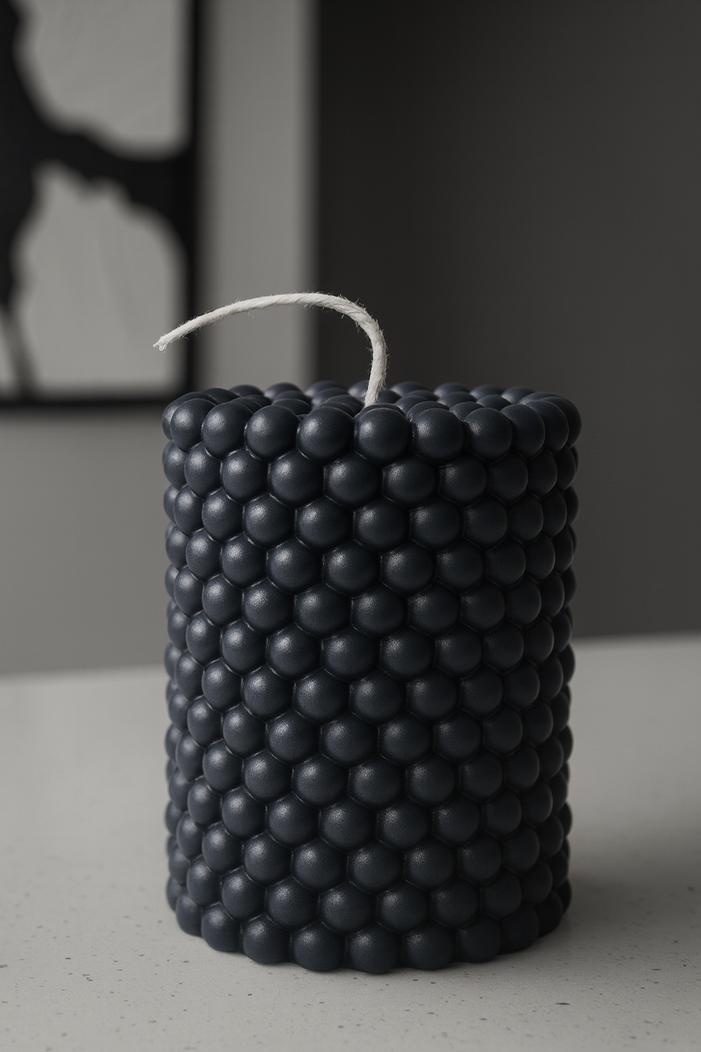La vela Midnight Bubbles es una pieza moderna y sofisticada que combina diseño minimalista con un estilo único. Elaborada artesanalmente con cera de soya natural y mecha de algodón, su superficie en relieve de esferas crea un efecto visual cautivador que transforma cualquier espacio. Perfecta para decorar ambientes elegantes o regalar un detalle original y exclusivo.